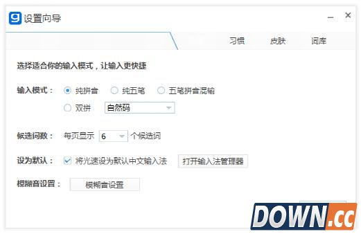 【光速输入法特点】 1.纯五笔、纯拼音、五笔拼音混输,三种输入模式任你选择。光速输入法最早是以五笔输入起家,其五笔功能确实口碑很好,被网友称为是所有86版五笔中最好用的五笔输入法,后来基于用户需求,开发团队将拼音、五笔拼音混输、双拼等输入模式也集合到光速输入法中,只需要一款光速输入法即可满足全家的打字需求。2.占用内存小,运行速度快。光速输入法安装包仅15MB左右,体积轻巧,且输入法本身摈弃了许多累赘功能,不藏暗门,不捆绑其他软件,真正为用户提供优质流畅的输入体验。 3.云功能,想去哪就带去哪。只要注册光速输入法用户,光速就可以为你记录每天的词组、打字习惯、打字字数等数据,换台电脑,只需登录就可以瞬间找回自己的打字习惯,再也不怕打字习惯丢失! 【光速输入法基础使用教程】 光速输入法的安装包下载:https://www.11455.com/soft/12968.html 双击安装文件: ![]() ![]() 安装完成后,用户可以直接进入设置向导,根据自己的输入习惯进行设置。 ![]()
