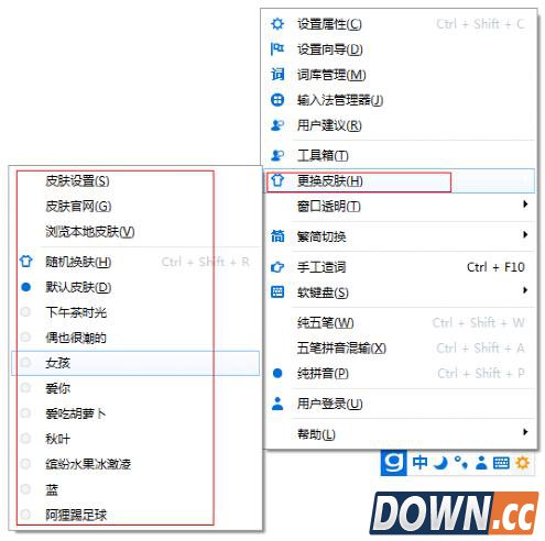若用户对默认皮肤不满意,可以到光速输入法官网皮肤版块选择喜爱的皮肤下载,然后双击文件即可完成安装,若皮肤没有自动更新,可以右击输入法状态栏,选择更换皮肤,点击列表中出现的皮肤即可换肤。