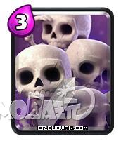 骷髅军团 如果不能很好地反制,骷髅军团那夸张的伤害能够在眨眼之间干掉任何一个目标。 虽然相对于地狱之塔而言骷髅军团在圣水消耗上占有优势,但美中不足的是非常容易被对手反制——特别是在拥有滚木、小电以及坦克身后跟着有AOE部队的时候。 当然如果能够提前引诱对手使用这些卡牌,那么骷髅军团围殴坦克的效果还是非常赞的。