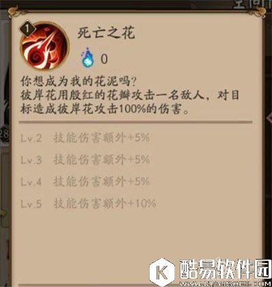 死亡之花、用殷红的花瓣攻击一名敌人,对目标造成彼岸花攻击100%的伤害