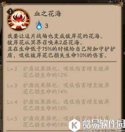 赤团华、彼岸花进入战斗就找召唤除3层花海,每回合花海会消减一层。花海中敌人每回合行动前会受到彼岸花攻击力60%的伤害,每层花海额外再增加30%的伤害(多个彼岸花同事作用伤害一次衰减50%)彼岸花生命每降低25%,能够额外获得一层花海,最多六层。这个技能只要是敌人行动就会受到伤害,这是一个一直扣血的BUFF啊。