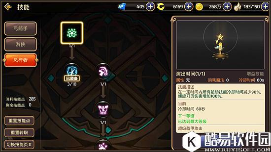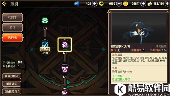 《龙之谷手游》风行者是游侠分支的转职业,其技能也是非常的厉害。45-60级的技能,大神为你亲自讲解,把自己积累的全部经验倾囊相授,不看保证你后悔! 【45级】 45级2个新技能:1,演出时间——首先这是一个buff类技能,这个buff的描述中,在一定时间内(5秒)所有的被动技能冷却时间减少90%。这是什么概念呢?游侠的被动技能有很多,举个例子最简单的就是解控,还有翻滚,以及游侠专属的翻滚 攻击键的一个组合攻击,那么在开启了这个buff之后的5秒钟,我们这些被动技能几乎是等于没有CD的,可以反复使用,绝大多数的风行者玩家在PVP当中都会选择在适当的时机开启buff并且循环使用翻滚 攻击键(游侠技能:螺旋踢)对敌人进行多段攻击。这是一个非常Imba的技能,为什么这么说呢,因为螺旋踢的释放是建立在翻滚的基础上,而翻滚是无敌的,无限制的使用翻滚螺旋踢,那么对手将无法攻击到你,并且在交出逃生技能的时候,被你的快速攻击再次抓取,受到更重的后续打击。一旦应对不妥,极有可能被一套带走,极大的弥补了游侠技能连招的真空期,堪称风行者的标志性技能。 而另外一个效果是增加螺旋刀刃伤害100%,这个很好理解,开启buff后5秒内,你使用15级的大招螺旋刀刃,造成双倍伤害,简单粗暴,但是仅仅是受用于副本,毕竟PVP当中,这样的机会少之又少,高手玩家之间的博弈,很难有重大失误让一个风行玩家打出双倍大招,条件太为苛刻。