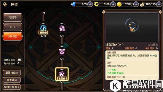 【50级】 50级第一个EX技能:螺旋踢EX——说起这个技能,就让广大游侠又爱又恨,在技能的描述中,特性非常美好,提高伤害,附带debuff,并且可以最后一段击飞,并且属于无敌技能。但是当我们真实使用的时候发现,螺旋踢EX并没有所谓的无敌效果存在,并且,EX的螺旋踢 突进距离比不是EX的普通螺旋踢要短了接近1/3左右,这就造成了一个很尴尬的局面:就是原先可以追上的敌人,现在追不到了。再加上技能收尾有一个向上击飞对手的动作,该动作必须做完之后才能衔接其他技能,螺旋踢本身就是附带硬直 击飞的效果,再次击飞对于 对手来说早已交出浮空调整跑路了。正常情况下对手交出浮空可以用螺旋风暴等技能进行追击,现在有了EX反而无法第一时间交出其他技能衔接,举个很简单的例子,当风行者使用螺旋踢去追击贤者的时候,这时候贤者用他的重击(起手无敌)反打我,而我原先可以用 箭雨(起手无敌)躲开他的重击。但是,因为EX技能的动作拖沓,不能进行躲避,必然吃到对手技能的伤害,非常尴尬,所以风行玩家一般不会选择学习这个技能。(备注:在龙之谷端游中风行的螺旋踢EX是通过攻击按键决定是否使用击飞,而手游只能自动释放)