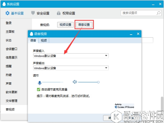 其次,软件设置问题(主要是语音视频设置的声音输入、输出设置不正确),比如常用的QQ软件。 1、打开QQ,在聊天栏下方选择系统设置,进入设置页面,选择“音视频”