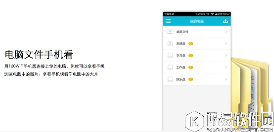我们只需下载160wifi移动版,用其连接到我们的电脑当中,即可拿着手机来浏览电脑当中的图片、拿着手机也可以享受电脑当中的大片,节省了手机本身的存储空间,还很好的提升了手机的使用效率,让您在家中使用一部手机,即可完成学习、工作和娱乐。