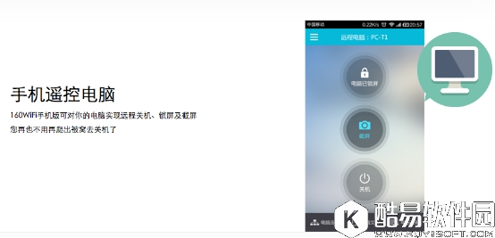 当然160wifi手机版还拥有多种强大的功能,比如手机与PC之间的无线文件传输,不仅满足了人们使用手机浏览电脑当中的内容,还可以让您将手机当中的内容无线上传到电脑当中,真正的实现了手机和电脑之间的互通。 而使用手机来遥控电脑的开关机、锁屏和截屏等,更是标志着懒人新时代的到来,让您不用再起床去动手关闭自己的电脑,让您躺在床上即可享受电脑当中大量的内容,并且做到了无线使用管理等功能,让您在家中彻底的“懒”下去。