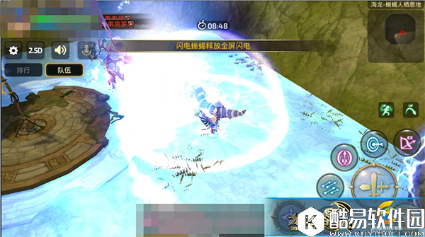 躲避方法:该技能前摇动作同样很长,用翻滚翻滚至红圈外即可躲避。 4.全屏闪电:当白皮要释放此技能时,同样会趴下身子,并且字幕上会提示倒计时,倒计时结束后,白皮释放此技能,除了白皮身边的人,其余在远处或者不在身侧的人会受到全屏闪电的多段伤害。