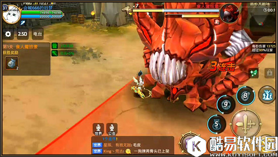 食人魔奴隶庞大无比,是小伙伴们体型的好几倍,从远处看来让我们压力十足。在谷民们进入游戏之后,Boss就仿佛发狂一样突如其来的对我们发动冲锋技能,冲锋技能的攻击范围较大,一旦被命中也会受到不小的伤害。所以我们在对Boss进行攻击的时候,千万不要正对Boss,那样将会处于Boss技能范围的中央区域,躲避难度较大。而在Boss的身旁则可以通过普通的走位轻松躲避。这也是躲避掉食人魔奴隶Boss冲锋技能的一个小技巧哦。 以上图为例,此刻我们及时的向左侧移动较小的一段距离就能轻松化解本次危机。除此之外当Boss冲刺到我们面前的时候,小伙伴们还可以利用闪避技能进入短暂的无敌状态,这样Boss的冲锋技能就不会对我们造成任何的伤害。 【食人魔奴隶技能招式②:回旋拍地】