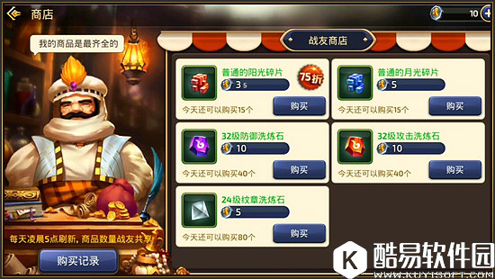 我们通过在战友活跃值中获得的战友币即可在每日的战友商店中购买各种实用道具,例如32级防御洗炼石,32级攻击洗炼石,24级纹章洗炼石都是前期非常重要的道具,在游戏后期能够帮助我们提升较大的战力。除此之外在战友组队战斗的情况下还会有战斗的专属加成,让我们的战斗更加轻松。 |