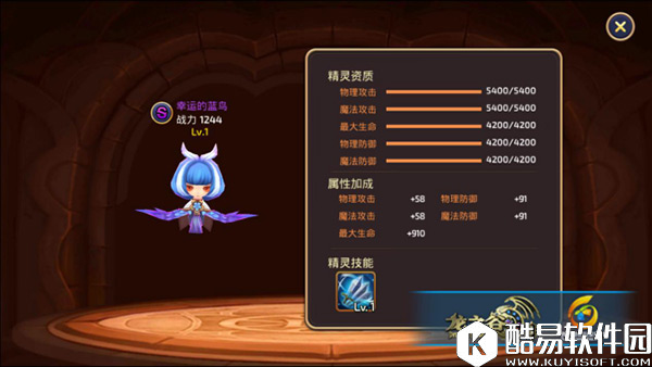 我们先说蓝鸟,S级精灵中的一个,但是他占据了1/3的江山。精灵技能叫时空行者。致命一击是概率触发致命提升和致命伤害提升,以及冷却缩短光环。全屏己方冷却缩短10%,所以说喜欢蓝鸟的玩家还是很多的。