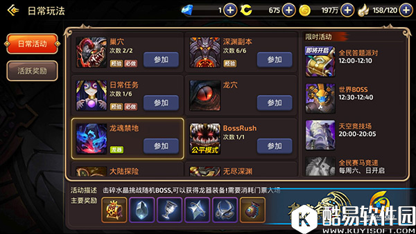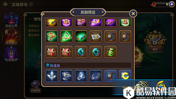 奖励也是很丰厚的,主要掉落55级的各品质龙器,龙器的基础属性及技能属性都是固定的,能不能打出适合自己的龙器就得看人品咯。刚才说到主要奖励是龙器,当然就还会有其他奖励啦,锻造石、附魔石、洗练石、精灵抽奖卷级精灵升星药水杂七杂八的都有奖励都有可能掉落,甚至还有龙币奖励哦!
