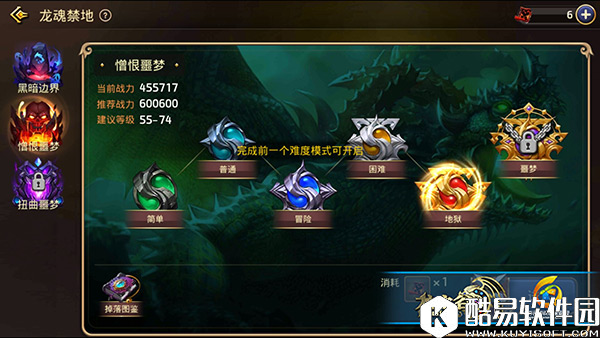 冒险家们达到35级即可开启单人副本“龙魂禁地”,龙魂禁地包含三大副本,黑暗边界、憎恨噩梦以及扭曲噩梦。现在普遍玩家都已经达到了55级以上了,所以呢在这里就直接给大家简单介绍一下憎恨噩梦关卡,达到55级的玩家可以在日常活动中找到龙魂禁地,进入并选择憎恨噩梦关卡。