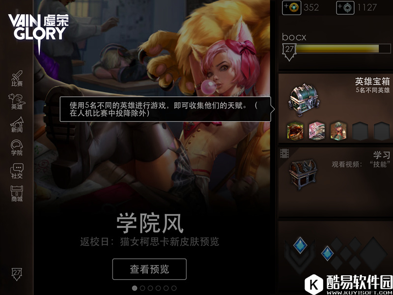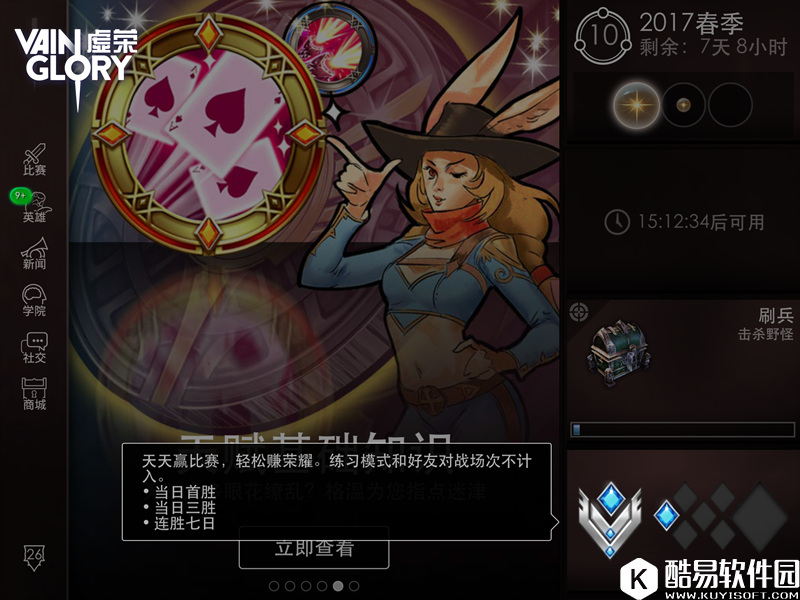 每天只需使用五名不同的英雄进行游戏,即可免费开启宝箱,获得这五名英雄的天赋币(数量不等)。以闪电战为例,玩家使用5名不同的英雄进行5局闪电战,不论输赢,最多25分钟即可开启宝箱,可谓游戏中目前收益效率最高的玩家任务。
