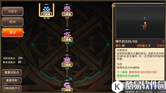 “爆炸箭矢”是魔羽职业的专属技能招式,能够发射具有魔法力量的箭矢,命中敌人之后会在3秒后发生爆炸,对一定范围内的敌军造成额外的伤害。本技能物理伤害非常高,当技能招式达到9级时就能够对敌方单位造成4480%的物理伤害,可以说的上是战场中的主力输出技能。 【魔羽招式携带6:迅矢连射】