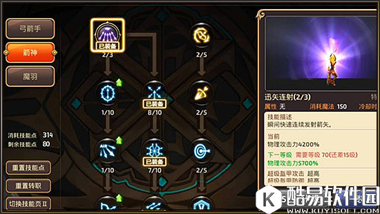 “迅矢连射”是箭神职业的大招,能够在瞬间发射出数量较多的箭矢对敌方单体单位造成爆炸伤害,不过本技能冷却时间较长,所以我们施放本技能时更要慎重,尽量让本技能在Boss关卡的实用效果最大化。 |