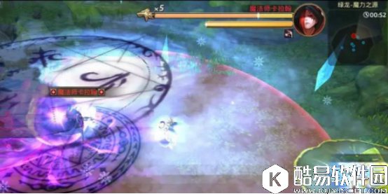 追踪冰刺:卡拉翰凝聚冰之力,发动魔法持续追击地图中所有目标(包括召唤物),一共追击4次,会提前出现蓝色魔法阵提示,在魔法阵亮起时跑或者翻滚出圈,然后进行小范围来回移动躲避接下来的三次。