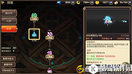 2,冰柱喷射——召唤出一个冰球,这个冰球会对四面八方随机射出冰柱,被冰柱碰到的对手会受到3秒的冰冻效果,持续减速。我们可以看到技能面板很高,伤害能力理应不错,冰球是向前持续移动的,所以攻击范围也很广。如果是在PVP中使用,那么用来限制走位等的作用感觉更大。在实践中发现,冰柱要命中对手确实有点碰运气,而且很多伤害是打不全的,因此PVP这个技能也许更适合与群殴,单挑的1V1天梯不太合适。PVE,在副本中由于大体积的boss多少比较迟钝,那么这个技能可以打出不俗的伤害,还是可以用的。