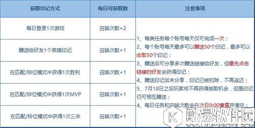 由此可见,没事就去峡谷浪才是get印记的王道! 嘀嘀嘀,前方高能预警,请务必瞪大眼睛!“铠”的印记在7月15日的首次抽取中必产出,7月16日-17日的抽取概率嘛,就会骤然下降啦……所以呢,想要稳妥的集齐七个印记兑换英雄“铠”的召唤师们,请务必在7月15日急速上线抽取印记!因为错过了这一天,你可能就会与帅气的银发小哥哥“铠”失之交臂了哦! 同时,这里还要特别说明下,同一个账号下(QQ、微信)所有游戏角色是共享兑换任务次数、抽取次数以及印记数量哒!也就是说,不管你这个账号的分区下有多少角色,那也只能兑换一次铠哦!兑换时,请务必再三确认你所选择兑换的角色信息哦!(QQ账号只能兑换手Q区的角色,微信账号只能兑换微信区的角色)。