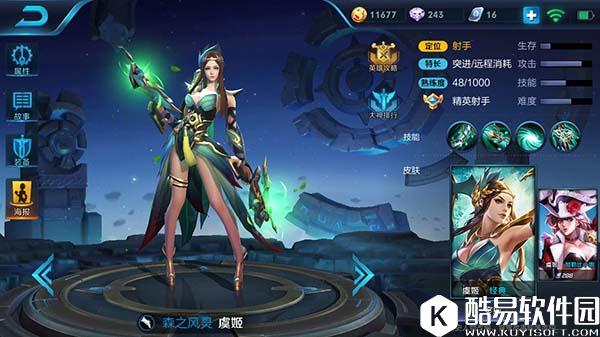 马可波罗的被动技能是每一次普通攻击都会连续发射两枪,第一枪命中造成70%物理加成点物理伤害,第二枪命中造成40%物理加成点物理伤害,提高了马可波罗的伤害,再配合一些强化普攻的装备,可以大幅度提高马可波罗的物理攻击,也是马可波罗具有超强爆发力的核心技能;一技能是一个远程消耗技能,冷却时间短、射程远,并且可以回复自身的能量,配合上攻速装,可以打出极高的输出;二技能是马可波罗的位移技能,会使马可波罗接下来3秒内的普通攻击附加法术伤害,提升了马可波罗的灵活性,虽然冷却短,但是消耗的能量多,使用时要算好能量;三技能是一个大范围AOE技能,在人堆中使用将会造成爆炸伤害,并且释放技能时可以提升自身的伤害和移速,必要时可以用来追击敌人。 马可波罗使用技巧:马可波罗的加点分为两种流派,一种是主一技能,主消耗,一种是主二技能,靠普攻打伤害,提升灵活性。但是到后期基本都一样,后期马可波罗是很少使用一、三两个技能的,因为有着被动加成的普通攻击的伤害要比一、三技能高得多。 森之风灵:虞姬 很多没有玩过虞姬的人,都认为虞姬只有一个一技能伤害非常高,打消耗无敌,但是你们知道吗?一技能只是虞姬实力的很小一部分,她真正的爆发力,都是来自于其它技能。