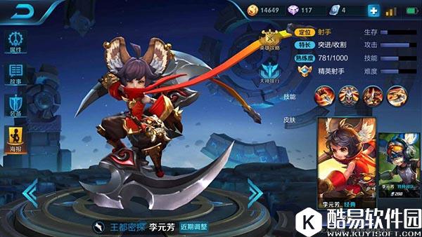 虞姬的被动就是一个极其变态的技能,脱战后第一次攻击附加极高物理加成的物理伤害,提升攻击距离,并且还会减速敌人,靠着这个被动,后期一个普通攻击就能让敌人吃不消;一技能就是虞姬的消耗技能了,有着超远的射程,超高的物理加成,前期消耗几箭就能让敌人回家;二技能是一个加速技能,使用时会清空自身减速效果,并且期间闪避所有物理攻击,是一个追击和保命的神技;三技能也是一个爆发极高的技能,附带位移和控制,除了提供爆发,三技能也是反杀刺客的绝佳武器。 虞姬使用技巧:虞姬的对线能力极强,线上可以轻易消耗对手,需要注意的一点是,被动必须要在脱离战斗后才能出发,所以在队友过来GANK之前,要使自身脱离战斗,等队友过来后再用被动将敌方减速,配合队友拿下敌人。使用三技能时要注意敌人位置,不然很容易跳到敌方人群中。 王都密探:李元芳 李元芳是一个很可爱的小正太,别看他小就觉得他好欺负,他要是凶起来,没几个人能抗住他的伤害,特别是刺客,可能还没到他身边就已经死了。
