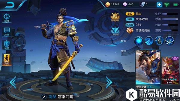 首先是双剑形态,被动提高了花木兰的移动速度,攻击目标5次后更是附带了伤害、沉默和减速的效果;一技能作为一个位移技能,命中一个敌人后5秒内还能使用第二次,提升了花木兰的灵活性,也是花木兰能秀起来的资本;二技能是一个远程消耗技能,还是一个AOE技能,会对敌人造成减速,3秒内能捡起来还会减少此技能3秒冷却时间;三技能最后再说。 重剑形态的被动增加了花木兰的普通攻击伤害,减少了基础攻速,释放技能时会霸体并且提升免伤,相比于双剑形态,重剑形态的花木兰颇有一番一力降十会的感觉;一技能是一个攻击力超高的AOE技能,被蓄力后的一技能打中还会被击飞或者减速,但是由于需要蓄力,单独使用命中率很低,要配合二技能使用;二技能也是一个输出带控制的技能,对敌人造成伤害的同时会击退敌人;三技能主要就是切换形态,附带一个AOE伤害和BUFF效果。花木兰的基本连招是,先双剑形态二技能将敌人减速到,再一技能冲到敌人身边,随后切重剑对敌人释放二技能,最后一技能收尾,再切双剑形态用一技能撤回来。花木兰技能很灵活,使用方法很多,需要自己慢慢挖掘。 剑圣——宫本武藏 宫本武藏是一个日本流浪武士的形象,之前也有过一次重做,主要是改变了一技能的形态,如果说重做前的宫本武藏像一名刺客,那么重做后的宫本武藏则是一名真正的战士!