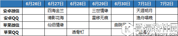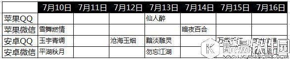 7月3日-7月9日 每天早上10点准备开服! 温馨提示:苹果QQ7月5日服务器梨花针和飞蝗石开服时间为7月5日下午15:00哦,请各位少侠了解!