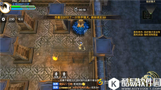 在驱赶猎犬趣味玩法中,在游戏区域中会随机出现2只猎犬,而我们要做的事情就是“护送”他们到规定的法阵之中。本玩法的限时时间为90S,如果在规定时间内没有将任务目标达成的话,则会直接导致任务失败。 本玩法有点类似于我们小时候玩的推箱子,只能通过我们的身体与之接触,猎犬才会向正方向移动一步。所以各位小伙伴们要想驱赶猎犬到指定的法阵之中还是非常考验技术的。 【稳扎稳扎很关键】
