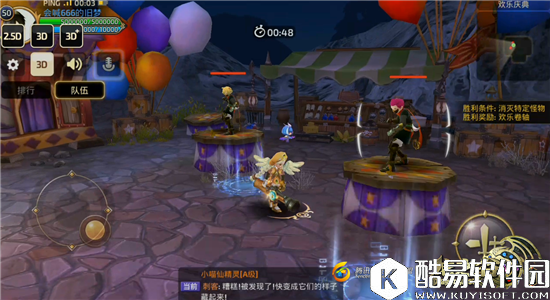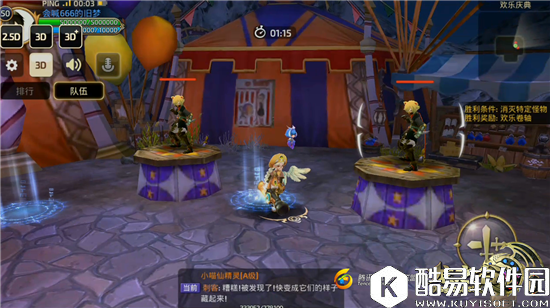 “炫酷到底”活动与《龙之谷手游》以往活动参与途径相同,都需要在专属NPC处接取任务。本次任务的NPC依旧是各位小伙伴们的老面孔小丑杰克,我们根据与小丑杰克的对话内容可以了解到,最近出现了一名刺客威胁着谷民们的日常生活,我们的任务就是将其击败。 进入活动副本之后,小伙伴们会来到一个类似马戏团的地方,发现自己的周围分布着许多奇怪的台子。在本副本中谷民们只能选择3D视角进行战斗,活动限时时间为90S,如果在规定时间内没有完成任务的话,我们将会任务失败,只能重新挑战。 【寻找真正的刺客】