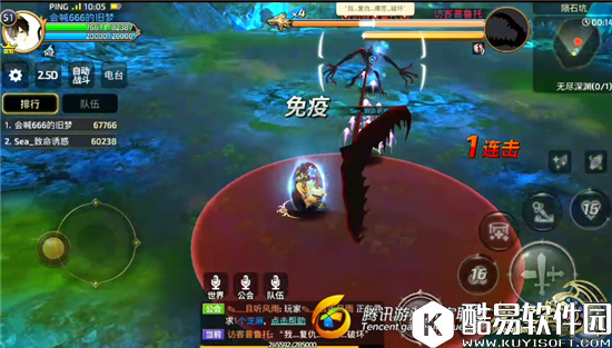 普鲁托本是陨石坑副本地图的终极Boss,由于在无尽深渊玩法中考验的是我们的技术,与战力无关,所以本Boss还是非常不容小觑的。我们刚进入到游戏之后,迎面而来的是普鲁托的1号技能招式“弹性伸缩”,将自己的舌头拉长到一定长度,在此范围内的本方队员都会受到致命的伤害。 “弹性伸缩”技能在原理上与之前挑战过的Boss“冲锋”技能类似,除了向两侧移动从技能范围内逃脱以外,各位谷民还可以掌握时机释放闪避技能免疫Boss技能的全部伤害。 【普鲁托技能招式2:X型斩击】
