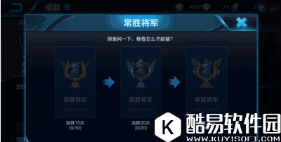 二.常胜将军 根据比赛连胜的次数获得此成就! 这个成就其实真的非常容易。不解释,拿着你最拿手的一个英雄,去玩1V1,连续打赢十场就行了,很多人大概以为是要打5V5十连胜才行,其实不是的,除单机开房间以外,其他任何模式十连胜都是可以的!