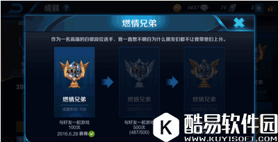 五.燃情兄弟 根据和好友一起游戏的次数来决定! 这个简单了吧!找个好基友,或者找自己的恋人每天一起匹配扯淡就行了,不要总是去世界拉人,世界频道的人都良莠不齐,不靠谱,而且也不能长期和你一起玩游戏!所以找一个可靠的好基友才是正道!
