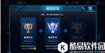 六.最佳队友 根据单局比赛中的总助攻数量决定! 这个简单极了,拿着孙膑找一个想刷超神之旅的朋友,让他带上你一起浪,专辅助他就行了,他杀30个你不就有30个助攻了呗!或者拿其他技能范围大,跑得快或是肉厚的英雄也可以!