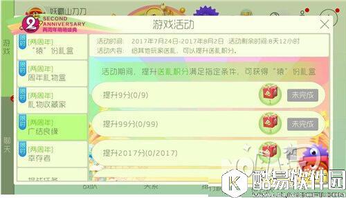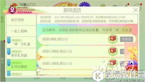 活动时间:2017.7.24~2017.8.2 活动内容:收到其他玩家的礼物,收到的礼物种类越多,可获得的奖励越丰厚。 广结良缘
