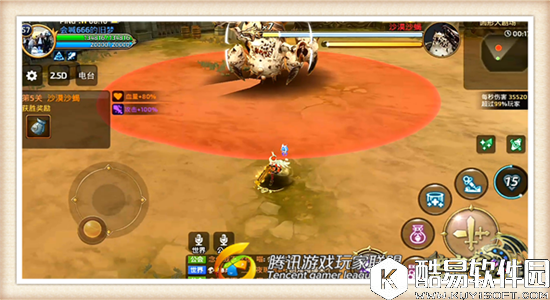 沙漠沙蝎在原地呈现出奇怪的回旋状态,小伙伴们与其距离过近就会被其回旋技能所伤害。不仅于此,沙漠沙蝎还会向各位谷民所在的游戏区域投掷出一枚威力巨大的沙漠飞弹,各位谷民看到自己脚下的技能范围提示后,就要抓准时机,使用闪避技能迅速从其技能范围中逃出。 |