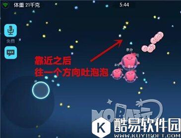 当我们分裂成一群小球,并且集中在一起的时候,使用这个方法合球是非常快的,具体操作是这样的。 第一步就是所有球球集中到一起,然后将控制球球移动方向的手指从屏幕移开,然后点击屏幕其他任何地方,这样所有球球都会自动将吐泡泡方向设定为中心位置。这时候控制技能的手指只要按住吐泡泡技能,就可以快速合球了。 除了上述方法,我们还有另外的控制所有小球朝着中心吐泡泡的方法。我们可以看到控制球球移动方向的图标中心处有一个圆形按键,我们只要松开手指然后再点击一下圆形的中心位置,所有球球就可以朝着中心位置吐泡泡了。但是中心合球法也有缺点,就是经常无法完全集中球球的力量,吐出的泡泡会被几个球球分摊吃掉,从而造就的不是一个大球,而是2-3个大球带着一群小球。 技巧二:同一方向移动吐泡泡合球