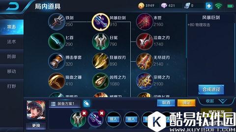 建议玩家中期的首出装备是日冕,一方面是因为日冕的黏人效果比较显著,而露露比较缺乏控制能力;另一方面日冕会提供较多的生命值加成,这点对于脆弱的露露来说太重要了。风暴巨剑的后期合成装备比较多样,刺客英雄人手一件。 后期出装:泣血之刃+宗师之力+破甲弓