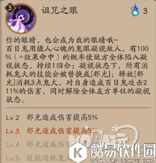 诅咒之眼: 1.什么是凝视? 2.鬼眸又是什么? 首先百目鬼的三个技能都是有很强的联动关系的。 普攻可以延长大招特效的持续回合。二技能可以有概率释放无消耗的大招。大招满级之后只需要消耗2点鬼火。 首先敌方消耗鬼火技能变为邪火?是什么概念。因为本身技能的基础命中就非常高,所以这个DEBUFF一定程度上可以理解为是必中的。凝视作为一个DEBUFF,是可以被驱散的。凝视的效果可以划分为沉默,如果不消耗鬼火对自身造成伤害解除队友的凝视效果,本回合就只能释放普攻。 身上有凝视的目标,全部消耗鬼火的技能会被替换为邪火,需要消耗3点鬼火释放一次邪火。对自身造成伤害,并解除队友的凝视状态。因为鬼眸是有概率性的,大招是减少鬼火消耗,所以技能等级至少是155为理想状态。有条件还是建议555,毕竟多一点伤害不是什么坏处。 PVE用法 PVE方面因为有很多情况会比较特殊,百目鬼一定程度上会被局限化,总体是个偏向PVP的式神。 日常带狗粮石距什么的还是算了,毕竟人家只是A攻击面板的式神。