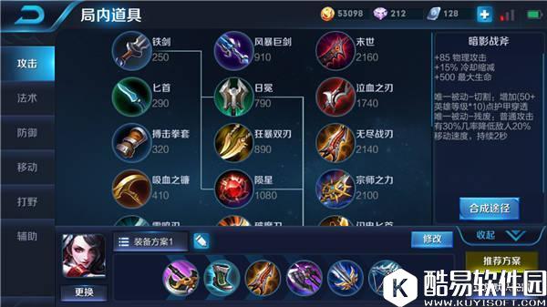 后期核心出装:破军+破甲弓 破军大大提升了阿轲的物理攻击,被动-破军能使阿轲在攻击残血敌人时,能造成更高的伤害;破甲弓提供了物理攻击、冷却缩减以及高额的护甲穿透加成。 【实战解析】 阿轲可以在前期快速地刷野,到了四级开始抓人,阿轲的三技能可以在抓人前使用,隐身进入战场,再进行收割,提高线上经济,减少线上压力,而隐身抓人可以增加抓人的成功率。刷新技能后可以再次使用三技能恢复血量,快速地去其他线上抓人。在团战时,阿轲要看好时间切入,一定不能第一个开团,在团战时隐身切入敌军后排,把输出位收割走,马上刷新技能脱离战场,再去收割前排。这样非常轻松地就能拿下团战的胜利。 |