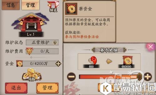 上图是道馆的主界面以及攻打道馆的相关规则。 在道馆栏的右侧,标记了该道馆的人数以及道馆的赏金和收入。根据规则所述,玩家进行道馆战需要消耗资金,如果战胜资金归还,如果失败资金归防守方所有。 而上图标准的30万不是 “资金” 而是 “赏金” 这部分钱应该就是规则上提到的“不菲的寮资金奖励” 可以看出资金的本质类似道馆战的门票,但是挑战本身就会消耗资金,只有获胜才能拿回资金,如果失败就血本无归。同时资金也会根据成员的功勋发放,不过每周功勋不足的玩家不能领取资金。 目前的资金获取途径有以下几种 1,每日收入:上图标注的“每日收入” 2,资金奖励:道馆战获胜后的资金奖励。 3,氪金补充:在寮管理页面上可以看到资金数量,并能用勾玉补充资金 在测试服,做新版阴阳寮的集体任务只能获得功勋和寮勋章,不能获得资金。