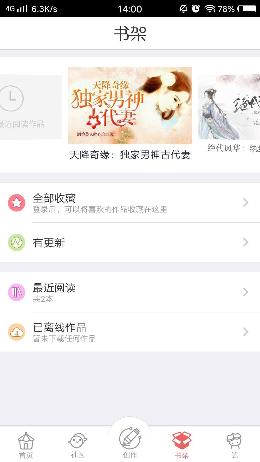 可以在社区这个功能中发表自己的看法,自己的读后感,也可以点赞评论,这个功能让小伙伴们可以在网络世界中得到更真实的交流。书架这个功能是你所有收藏的书籍以及离线书籍都在这个页面中。