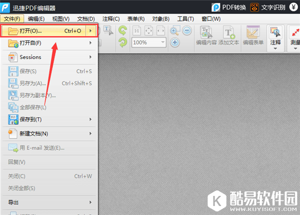 遇到些好的文章或是语句,总习惯将它收藏起来留用,但经常碰到一些网站的文字是不可以复制的,或者是要你花钱开通vip才能搬运文章,这点小计俩怎能难倒小编呢,今天教大家几招,轻松解决复制不了网页文字的问题。 一.PDF编辑器的快照功能 1、运行这款迅捷PDF编辑器,打开软件界面之后,点击界面的【文件】选项,然后点击【打开】选项,将需要进行编辑的PDF文档打开。