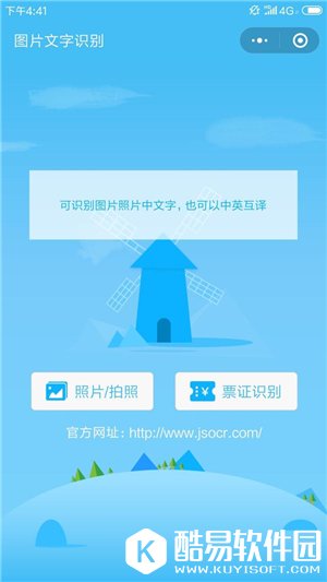 二.迅捷文字识别 1、直接微信上搜索【迅捷文字识别】就能使用这个小程序了。可以看到这个小程序的首页十分简洁、好看。