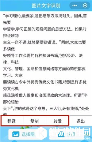 3、识别好的文字还可以进行翻译、复制,或者分享给微信好友哦。