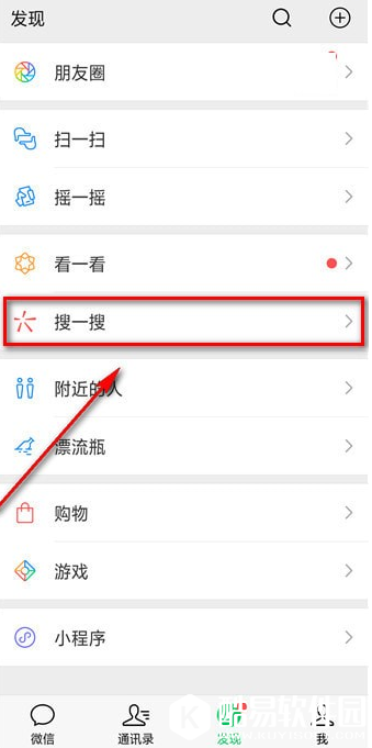 打开手机微信,进入界面,点击发现——搜一搜,