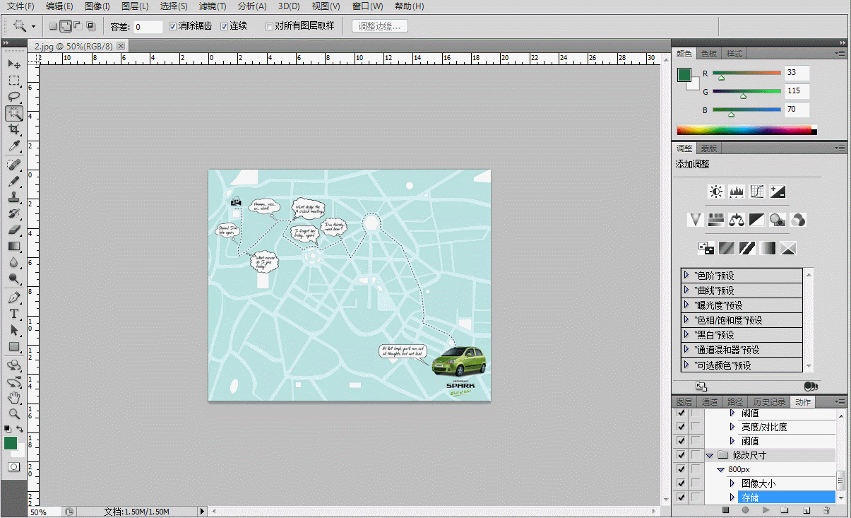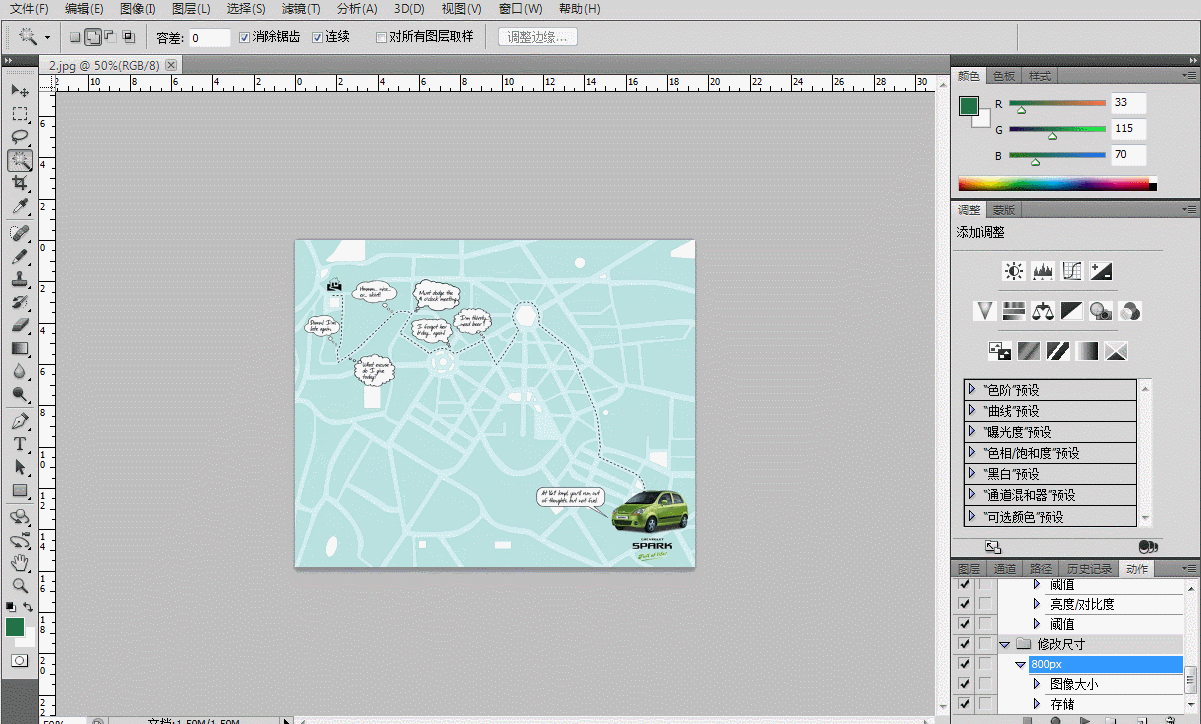 点击下方的“创建新动作”按钮,命名为800px,点击菜单栏【图像】—【图像大小】,修改图片尺寸,另存到刚刚新建的文件夹。整个动作已经录制完成,点击最左边的方形小按钮停止录制。