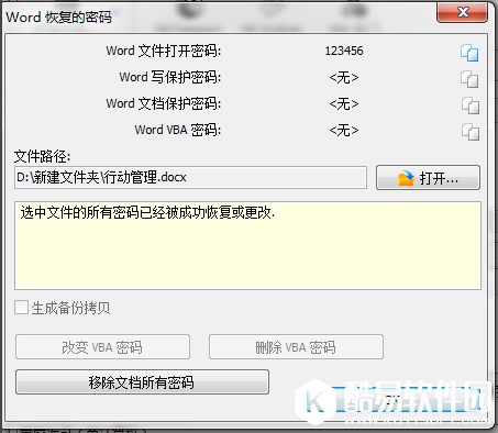 文件添加完成,点击“开始”按钮进行密码破解,几秒钟就破解成功了。