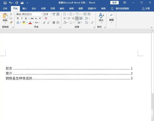 4、将鼠标放在第一行目录之间,按住Tab键,就可以快速完成Word文档目录排版。