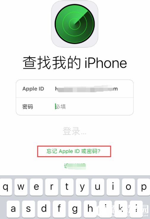 方法二 找到查找iphone功能,点击进入,选择【忘记ID或密码】,