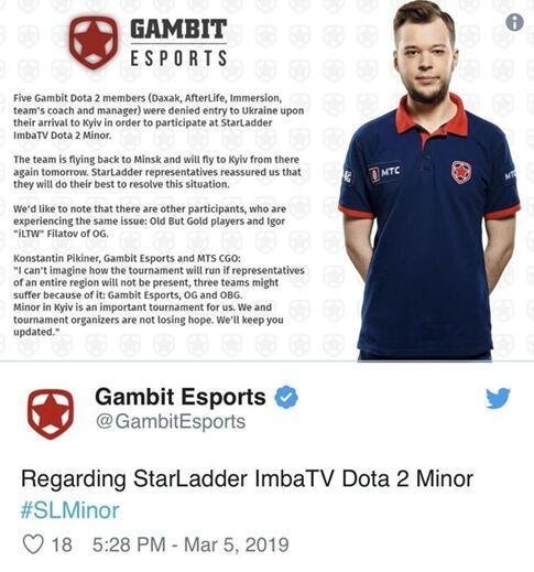 好消息是今天v1lat在推特上确认,Gambit的几位选手都已经顺利进入乌克兰。俄文大致翻译为:乌克兰海关放过了Gambit的俄罗斯选手,队伍教练在论坛中确认了这一点。