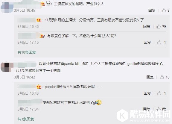 有消息称11月到1月期间主播的工资到现在都没有着落。不仅如此,连自家的节目Pandakill的制作费尾款也没有结。